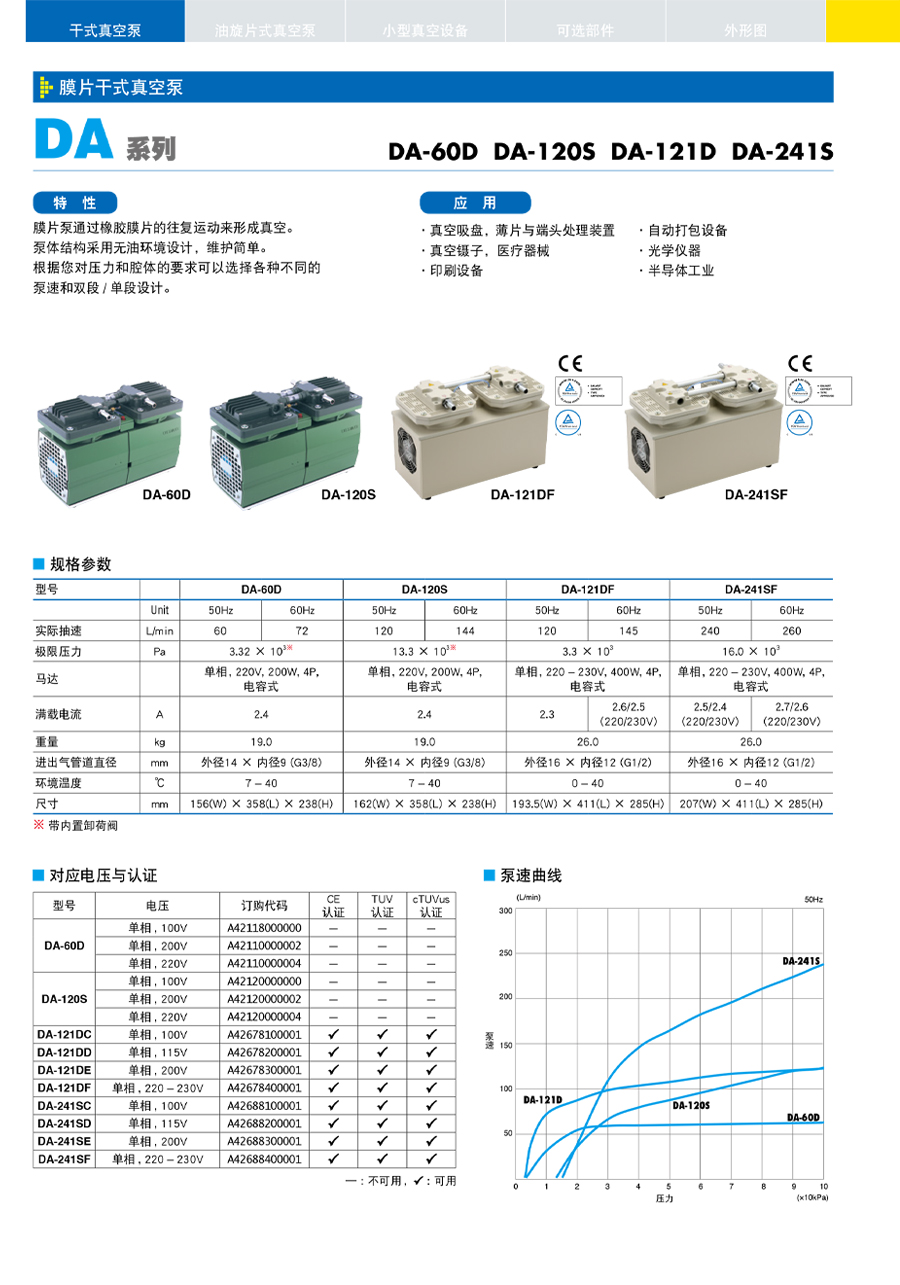 膜片干式真空泵-DA 系列