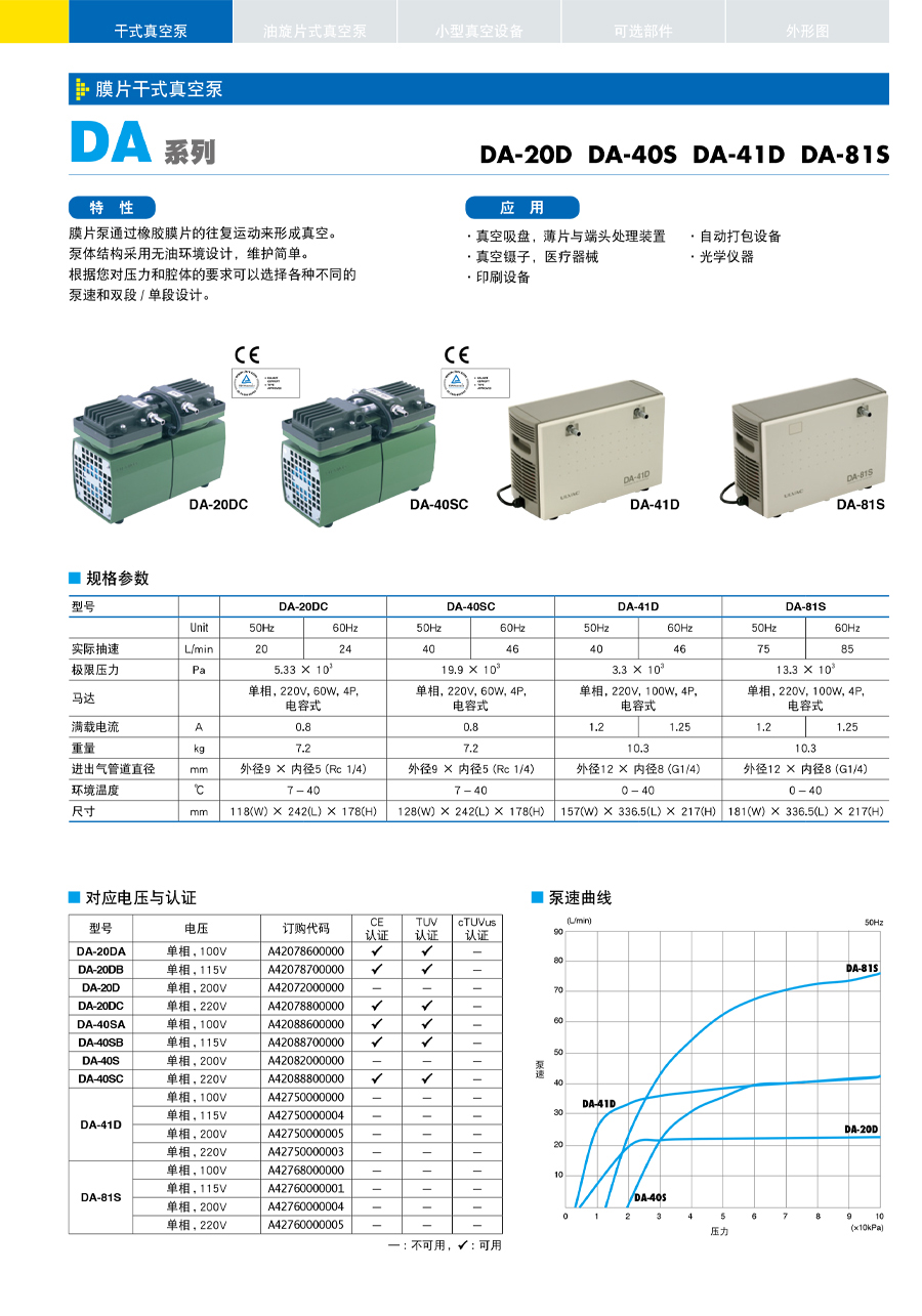 膜片干式真空泵-DA 系列
