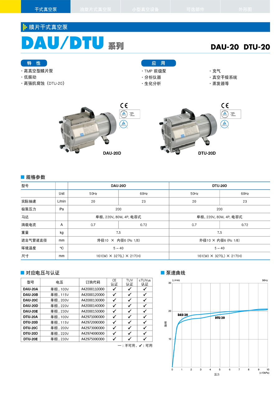 膜片干式真空泵-DAU/DTU 系列